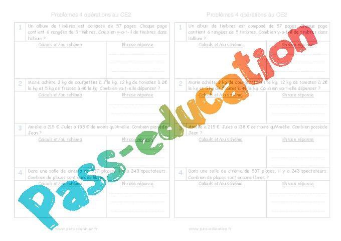 Problèmes à imprimer pour le ce2 sur les 4 opérations