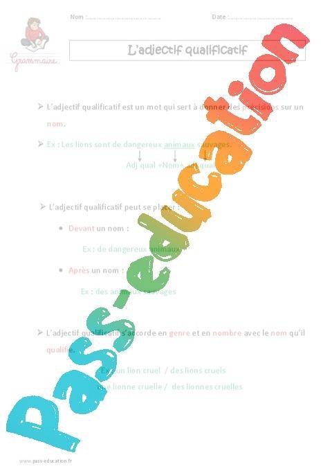 Adjectifs qualificatifs – Cm1 – Leçon – Cycle 3 – PDF à imprimer