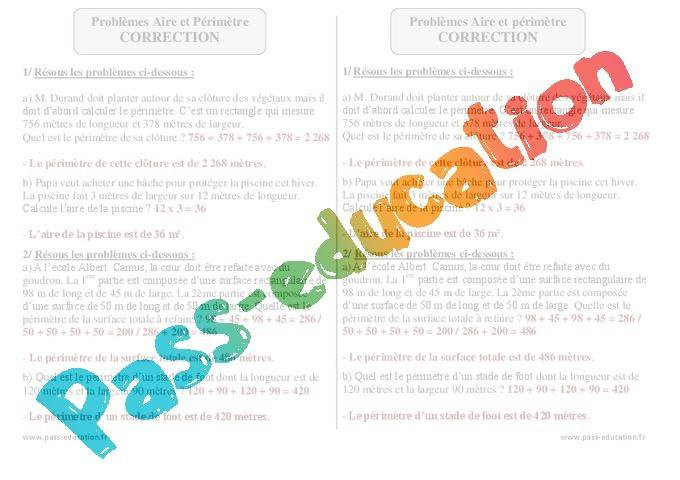 Aire et périmètre – Ce2 – Problèmes – Exercices corrigés – Mathématiques – Cycle 2 – PDF à imprimer