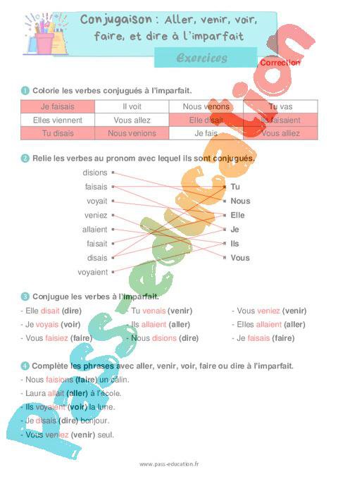 Exercices Correction CE1 Aller, venir, voir, faire, et dire à l’imparfait pdf