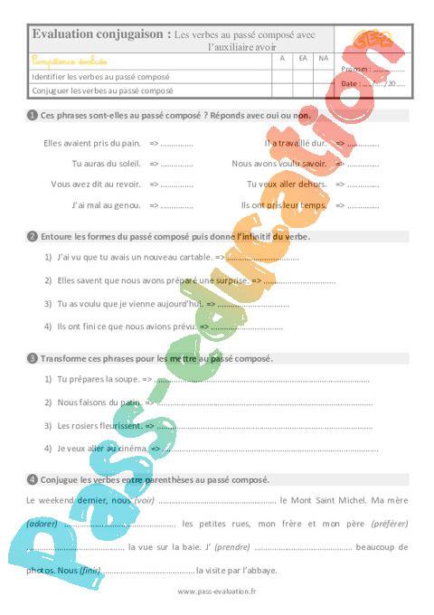 Evaluation – Ce2 – Les verbes au passé composé avec l’auxiliaire avoir pdf