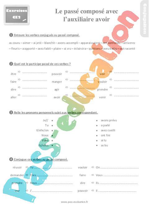 Exercices – Ce2 – Les verbes au passé composé avec l’auxiliaire avoir pdf