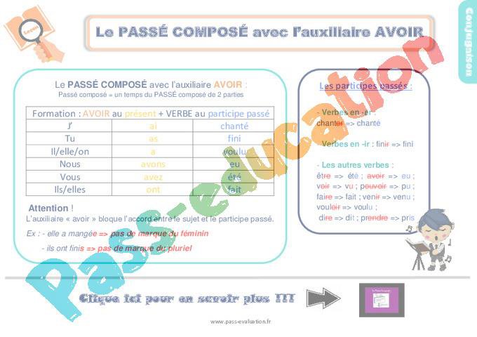 Evaluation conjugaison : Les verbes au passé composé avec l’auxiliaire avoir
