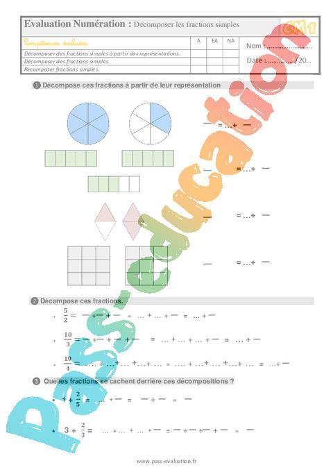 Evaluation – Bilan – Décomposer les fractions simples – CM1 pdf