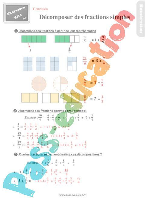 Exercices – Décomposer les fractions simples – CM1 – Correction pdf