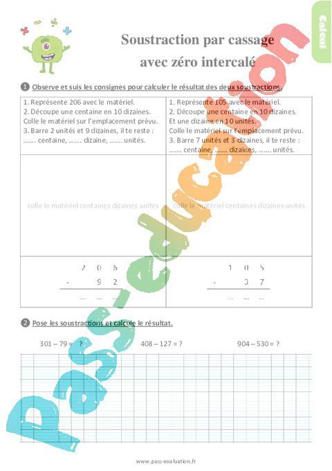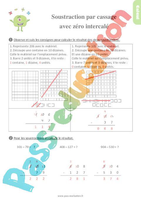 Leçon CE1 Soustraction par cassage avec zéro intercalé pdf