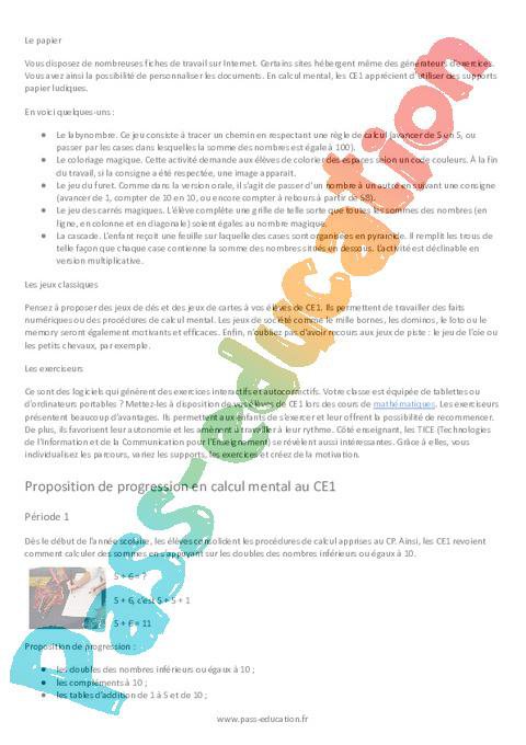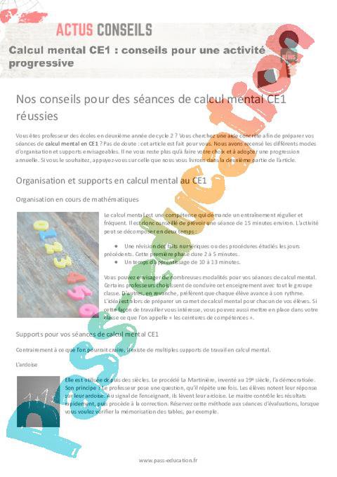 Calcul mental CE1 : conseils pour une activité progressive pdf