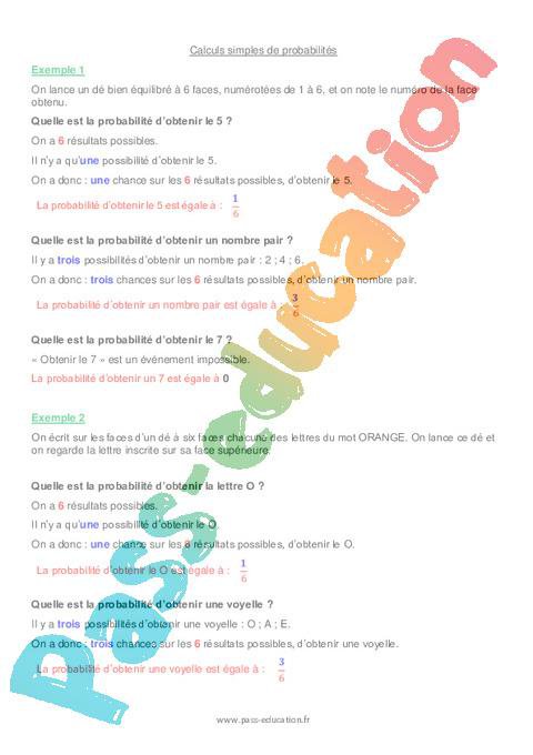 Cours Calculer une probabilité simple – 5ème pdf