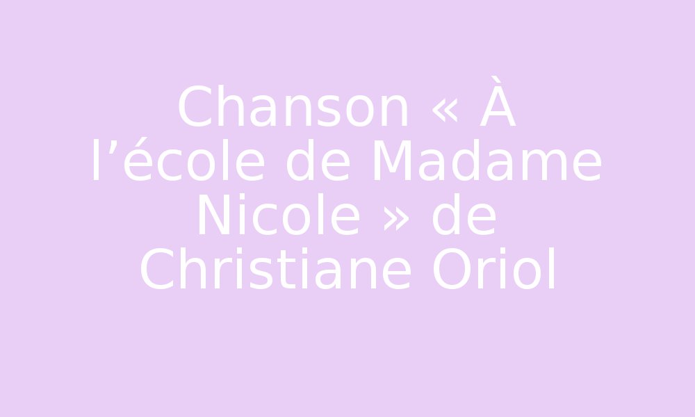 Chanson « À l’école de Madame Nicole » de Christiane Oriol
