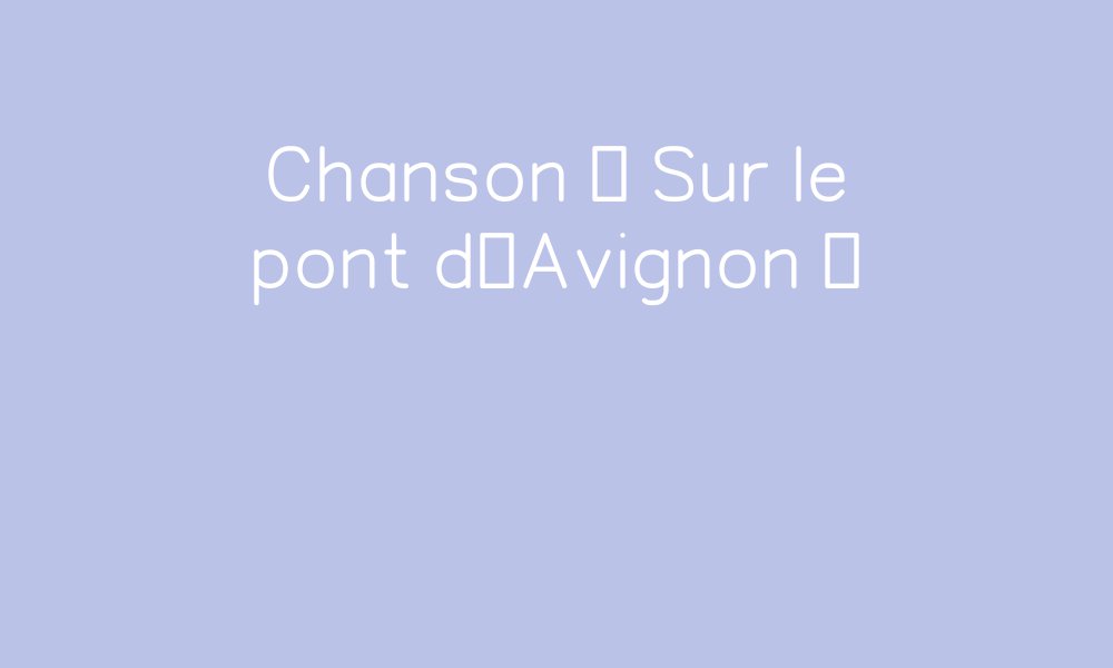 Chanson « Sur le pont d’Avignon » (0 avis) Classe PS MS GS Matière Indéterminé Type Audio Ressource proposée par Dessine-moi une histoire S'abonner Description Voir plus sur Dessine-moi une histoire