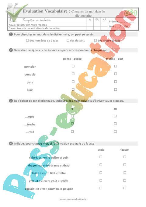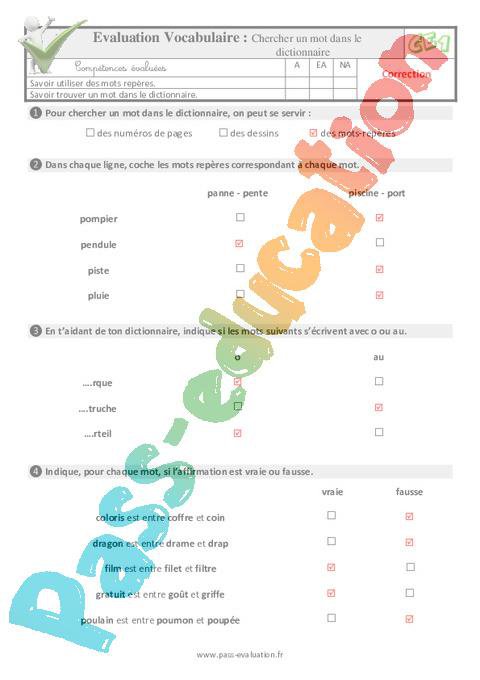 Evaluation Vocabulaire : Chercher un mot dans le dictionnaire