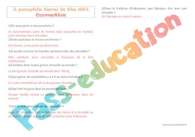 Texte documentaire sur les citrouilles d’halloween (A pumpkin farm in the USA) au Ce1, Ce2, Cm1 et Cm2