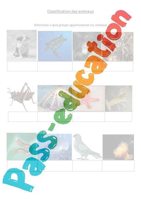 Classification des animaux -2- – Exercices – Cm1 – Sciences – Cycle 3 – PDF à imprimer