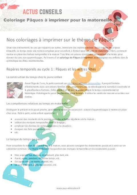 Situer des événements les uns par rapport aux autres, introduire des repères sociaux : voici certains des enjeux éducatifs. Le temps reste une notion complexe pour un enfant, à fortiori pour un petit de maternelle. Alors, comment mettre en place des balises temporelles à la maison ? Les fêtes et saisons constituent un réservoir d’activités pour donner du sens aux apprentissages. Au travers d’un coloriage de Pâques à imprimer, accompagnez vos enfants dans la symbolique des fêtes traditionnelles.
