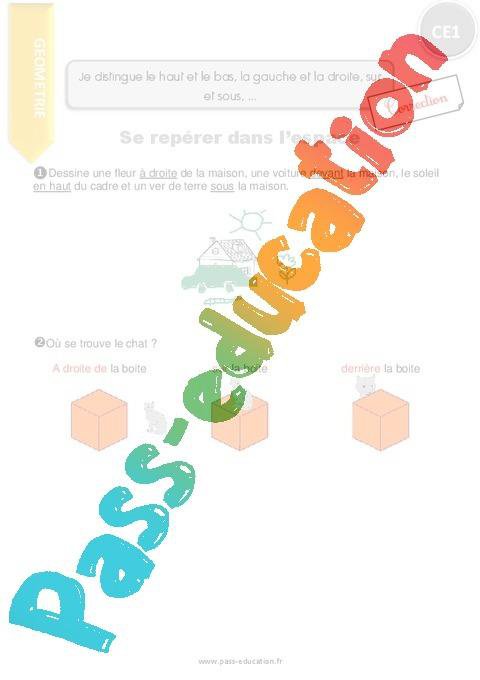 Exercices avec correction – CP: Je distingue le haut et le bas, la gauche et la droite, sur et sous, …