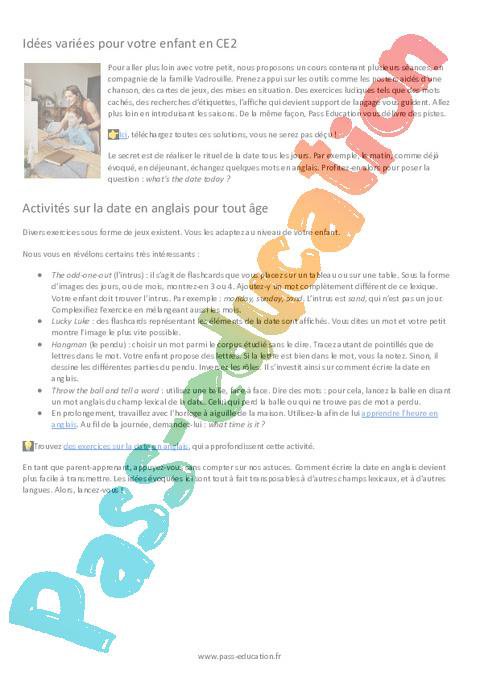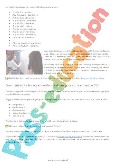 Comment écrire la date en anglais : astuces pour votre enfant de CE1L’apprentissage de la date en anglais nécessite une part ludique. Les outils proposés par Pass-education vous aiguillent vers des idées intéressantes.