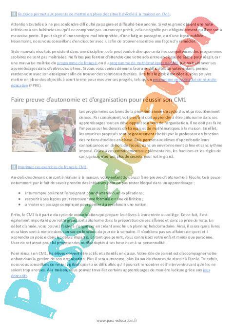 Faire preuve d’autonomie et d’organisation pour réussir son CM1Les programmes scolaires de la première année du cycle 3 sont particulièrement denses. Par conséquent, votre enfant doit apprendre à être autonome dans ses apprentissages tout en développant son sens de l’organisation. Il ne doit pas faire l’impasse sur les devoirs de français et de mathématiques à la maison. En effet, les exercices proposés sont soigneusement choisis par le professeur en fonction des notions étudiées en classe. Cela permet aux élèves d’approfondir leurs connaissances en dehors de l’école, dans un environnement calme et sans rythme imposé. Grâce à ces entraînements supplémentaires, les fractions et les règles de conjugaison n’auront plus de secrets pour votre grand.