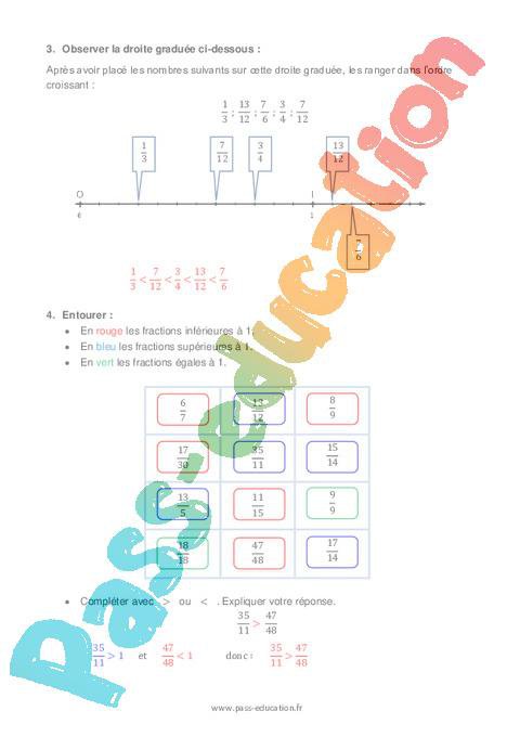 Exercices avec correction sur la comparaison de fractions pour le 5ème