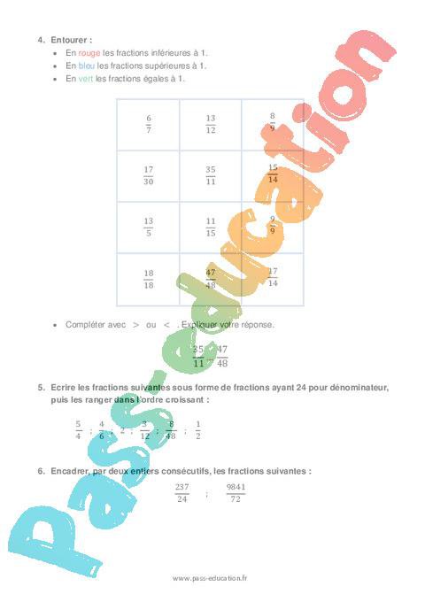 Exercices – 5ème – Comparer des fractions pdf