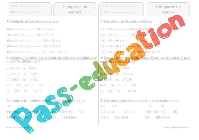 Ce2 – Exercices à imprimer – Comparer un nombre