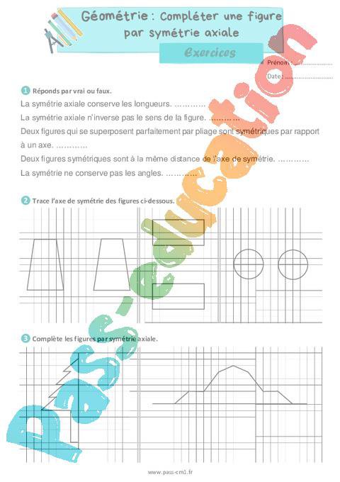 Exercices de géométrie avec la correction sur compléter une figure par symétrie axiale – Cm1.
