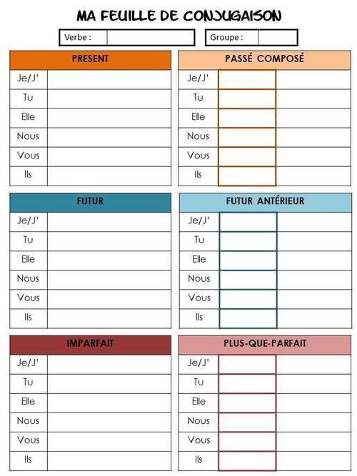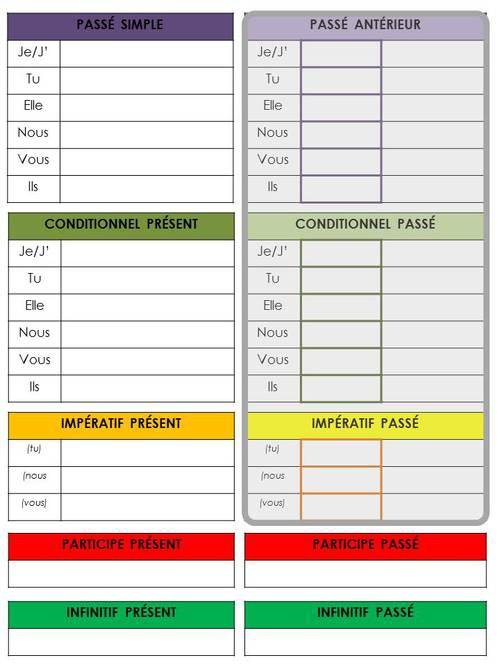 Voici une fiche que je donnerai une fois par semaine à mes élèves pour les aider à comprendre la conjugaison des différents temps et les liens entre chacun d'eux...