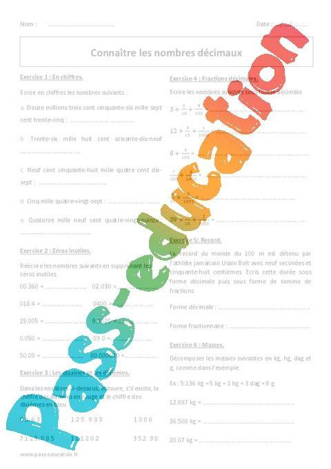 Exercices à imprimer sur les nombres décimaux pour la 6ème