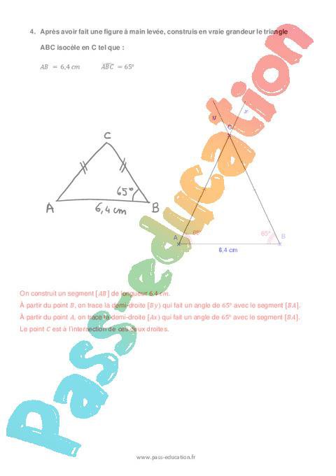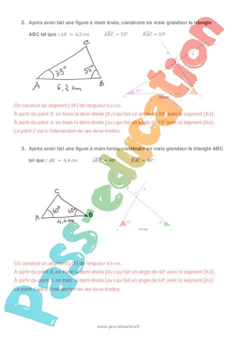 Construction d’un triangle connaissant deux angles et un côté – 5ème – Exercices avec les corrections – Cycle 4 – PDF à imprimer