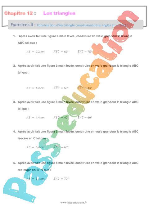 Exercices- 5ème – Construction d’un triangle connaissant deux angles et un côté pdf