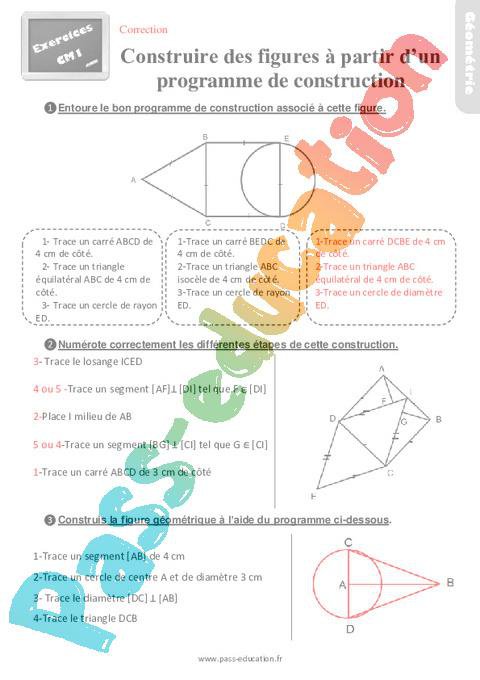 Exercices – CM1 sur construire une figure géométrique à partir d’un programme de construction pdf
