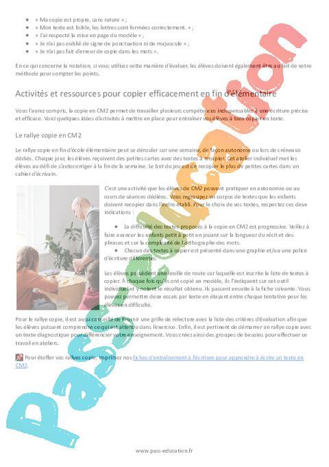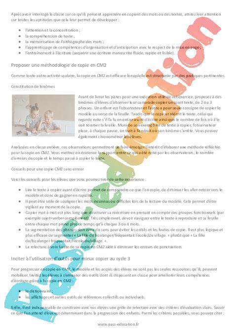 Cadre institutionnel pour la copie en CM2La copie en CM2 est un exercice qui vise plusieurs objectifs dans le domaine de l’écriture.