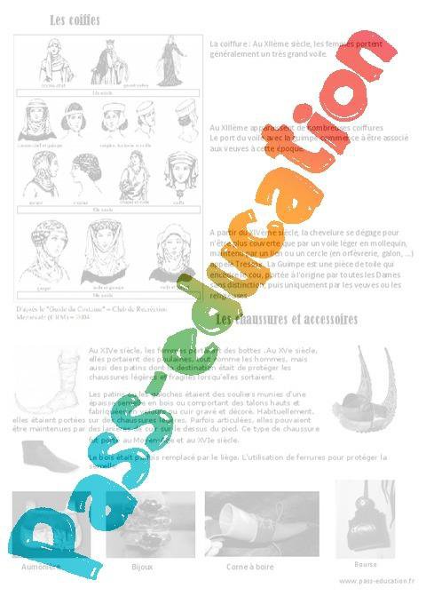 Sujet : Costumes et coiffes du Moyen Age – Arts du quotidien – Cm1 – Histoire des arts – Cycle 3