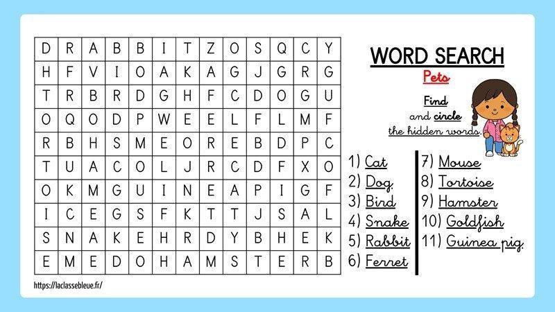 Le principe est tout simple : une grille de mots cachés comportant ici 11 mots à trouver avec la possibilité en cliquant sur chaque mot d’entendre sa prononciation mais aussi de visualiser l’image correspondante !