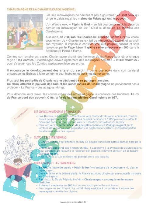 8 Trace écrite CM1 Mouvements population, Clovis mérovingiens, Charlemagne Carolingiens pdf