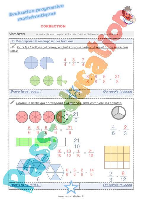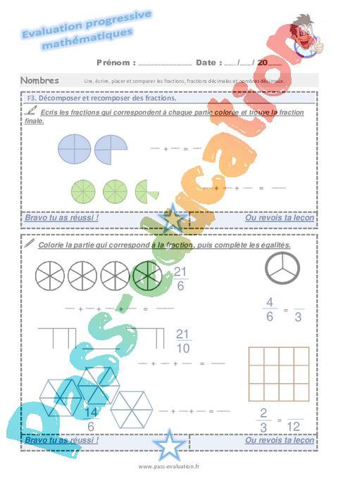 Evaluation progressive au CM1: Décomposer et recomposer des fractions