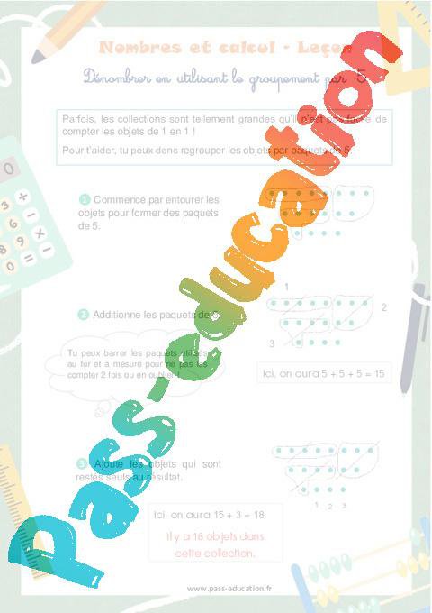 Dénombrer en utilisant le groupement par 5 – CP – Leçon pdf