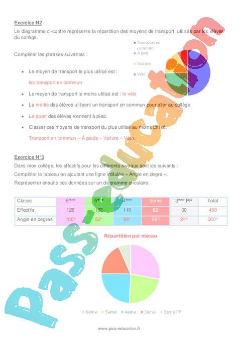 Diagrammes circulaires – 6ème – Evaluation, bilan – Gestion des données pdf