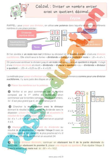 Leçon Cm2 Diviser un entier avec un quotient décimal pdf
