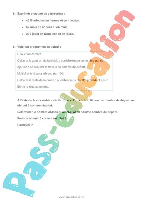 Exercices, révisions sur « Division euclidienne » à imprimer avec correction pour la 4ème