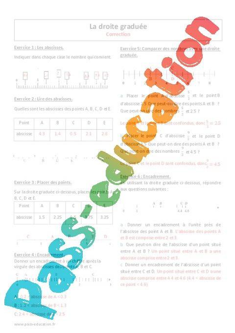 Droite graduée – 6ème – Exercices avec correction – Cycle 3 – PDF à imprimer