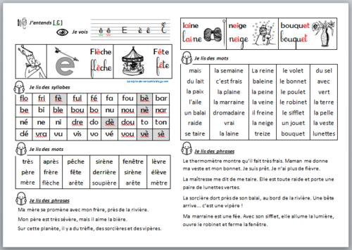Fiche de lecture sur le son [è] : « fiche son [è].pdf »