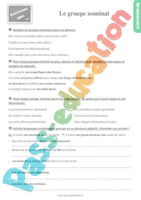 Exercices Correction Cm1 Le groupe nominal nom + adjectif pdf