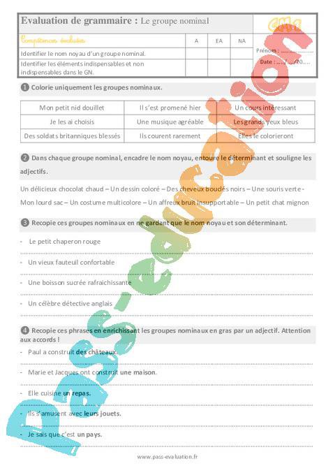 Evaluation Cm1 Le groupe nominal nom + adjectif pdf