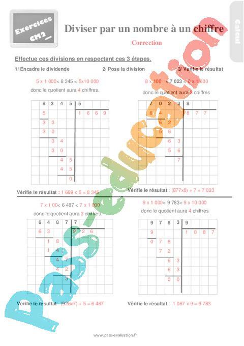 Exercices – Diviser par un nombre à un chiffre – Cm2 – Correction pdf