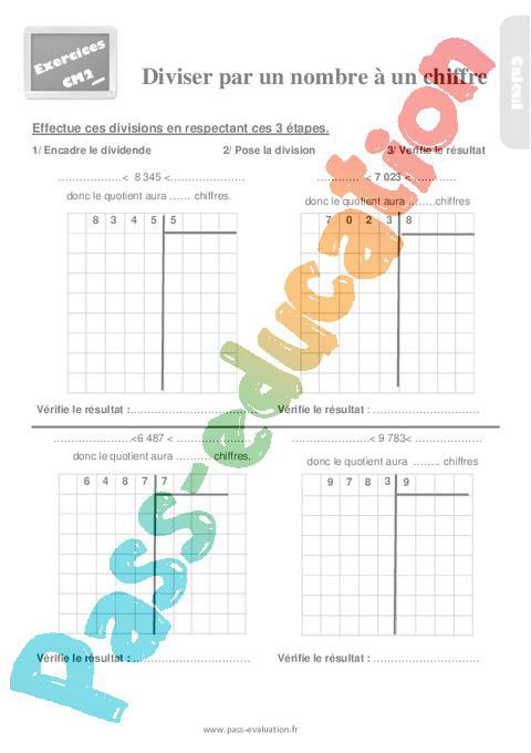 Exercices – Diviser par un nombre à un chiffre – Cm2 pdf