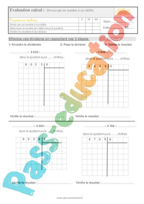 Evaluation – Bilan – Diviser par un nombre à un chiffre – Cm2 pdf