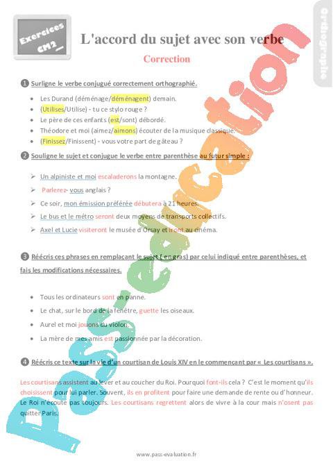 Exercices Correction Cm2 sur l’accord du sujet avec son verbe pdf