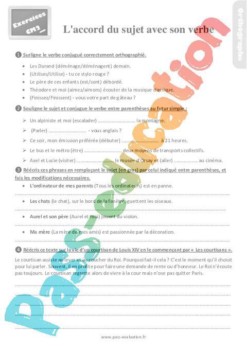 Exercices Cm2 sur l’accord du sujet avec son verbe pdf