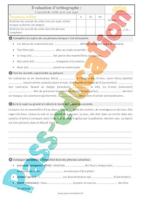 Evaluation Cm2 sur l’accord du sujet avec son verbe pdf