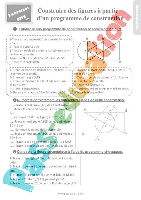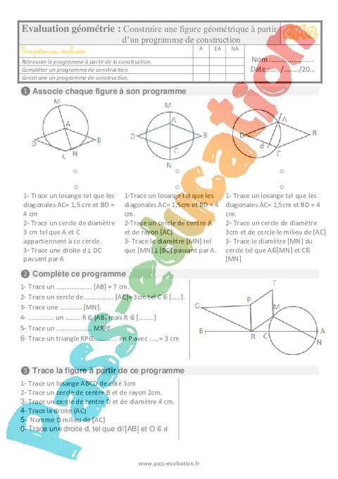 Evaluation et bilan sur construire une figure géométrique à partir d’un programme de construction pour le CM2 – Cycle 3 – PDF à imprimer